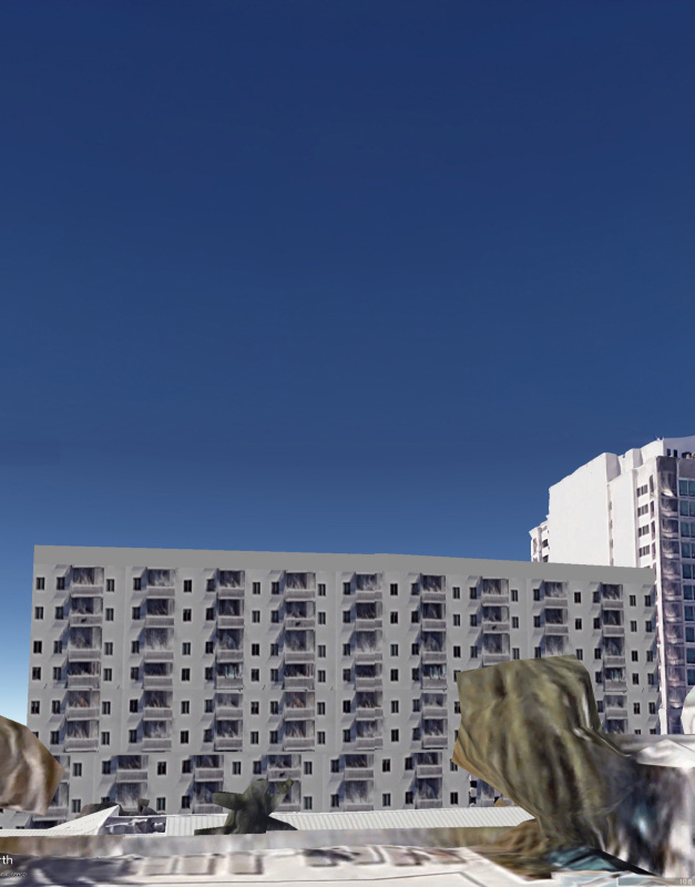Proposed unique 40 – 50’ view corridor for neighboring properties that would not be provided with 10-story single building design