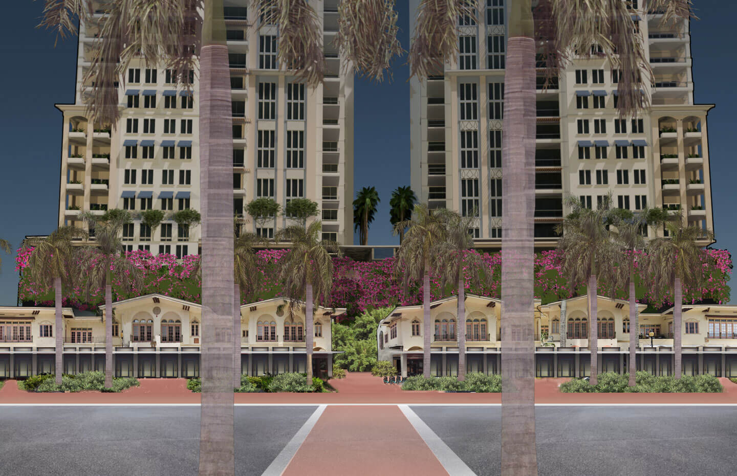 Seaward Development has enlisted renowned historical architects Rick Gonzalez of West Palm Beach-based REG Architects, Inc. and Igor Reyes of Coral Gables-based Nichols Architects, respectively, who have been working on the plan to rehabilitate the building and add the two 18-story buildings, with setbacks far greater than zoning currently requires, and to maximize light and air for neighboring properties and the creation of view corridors and outdoor spaces.